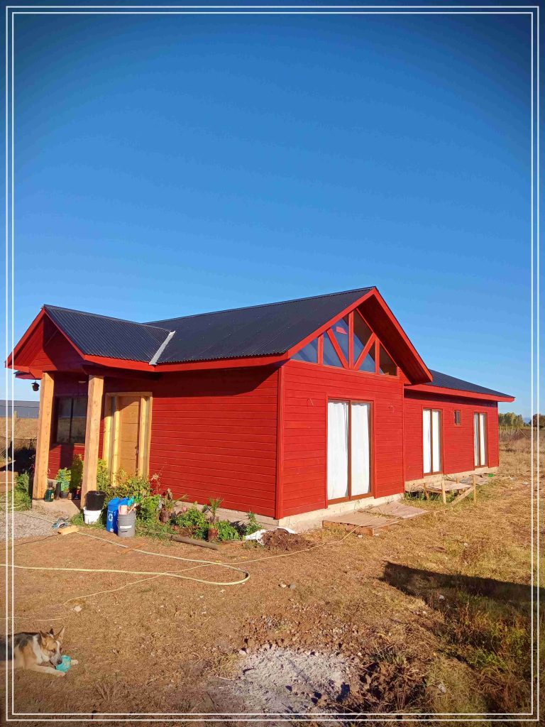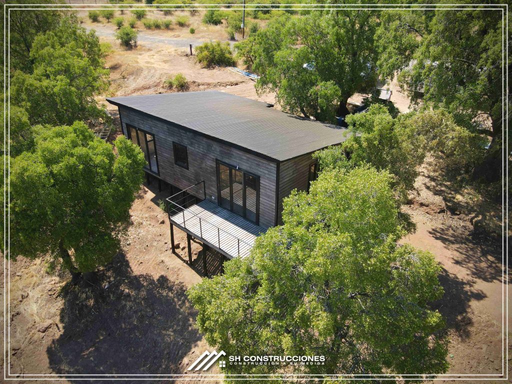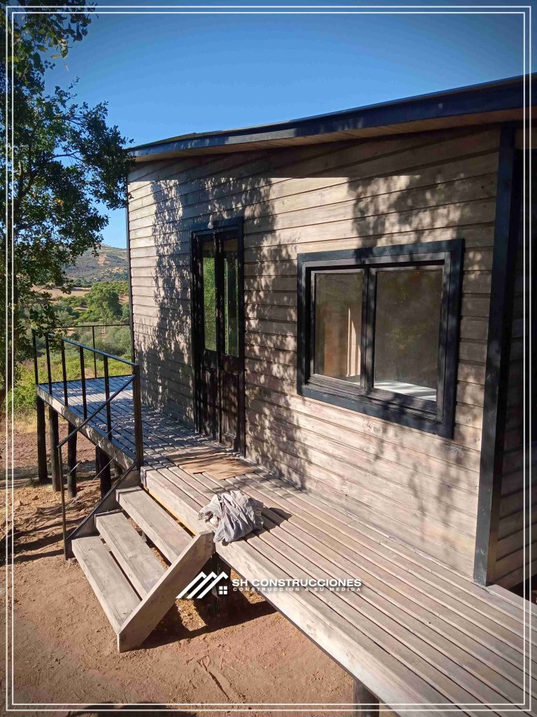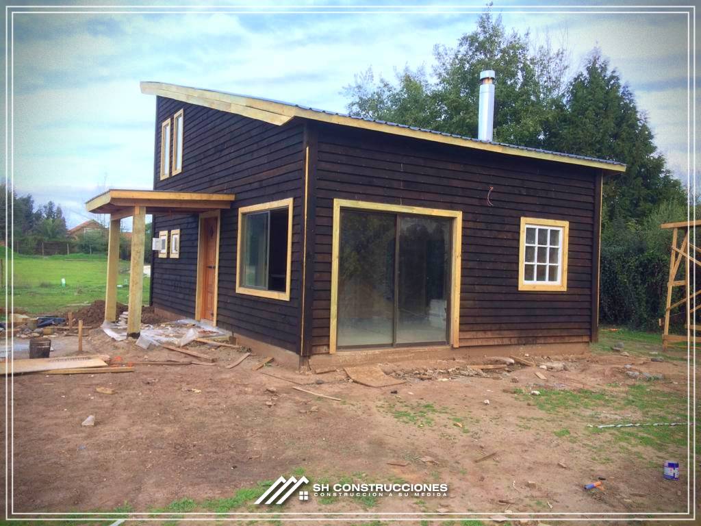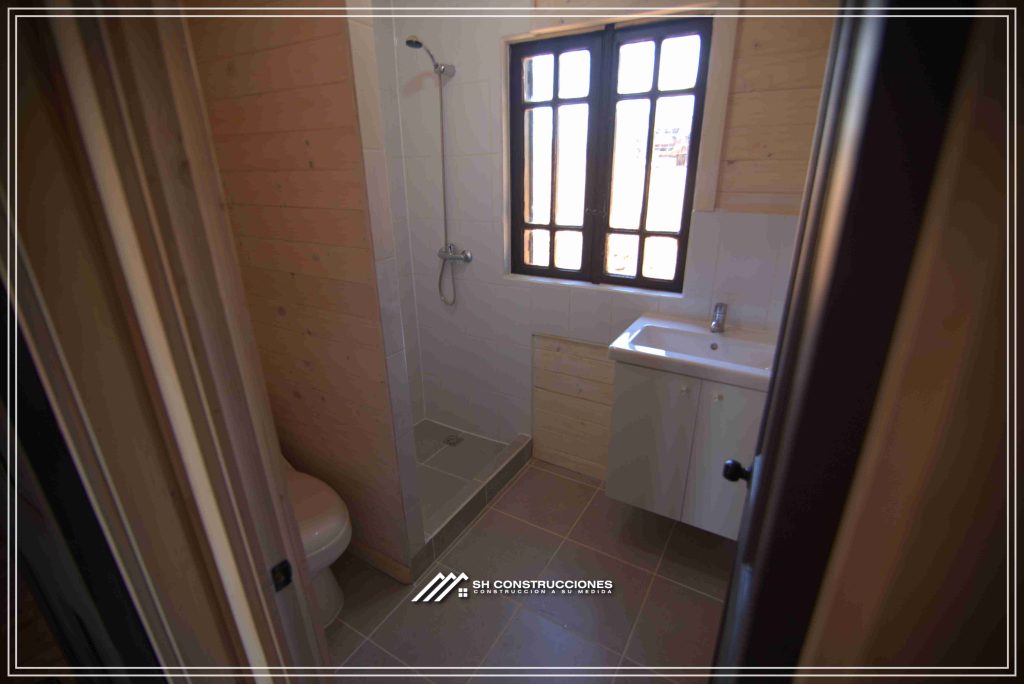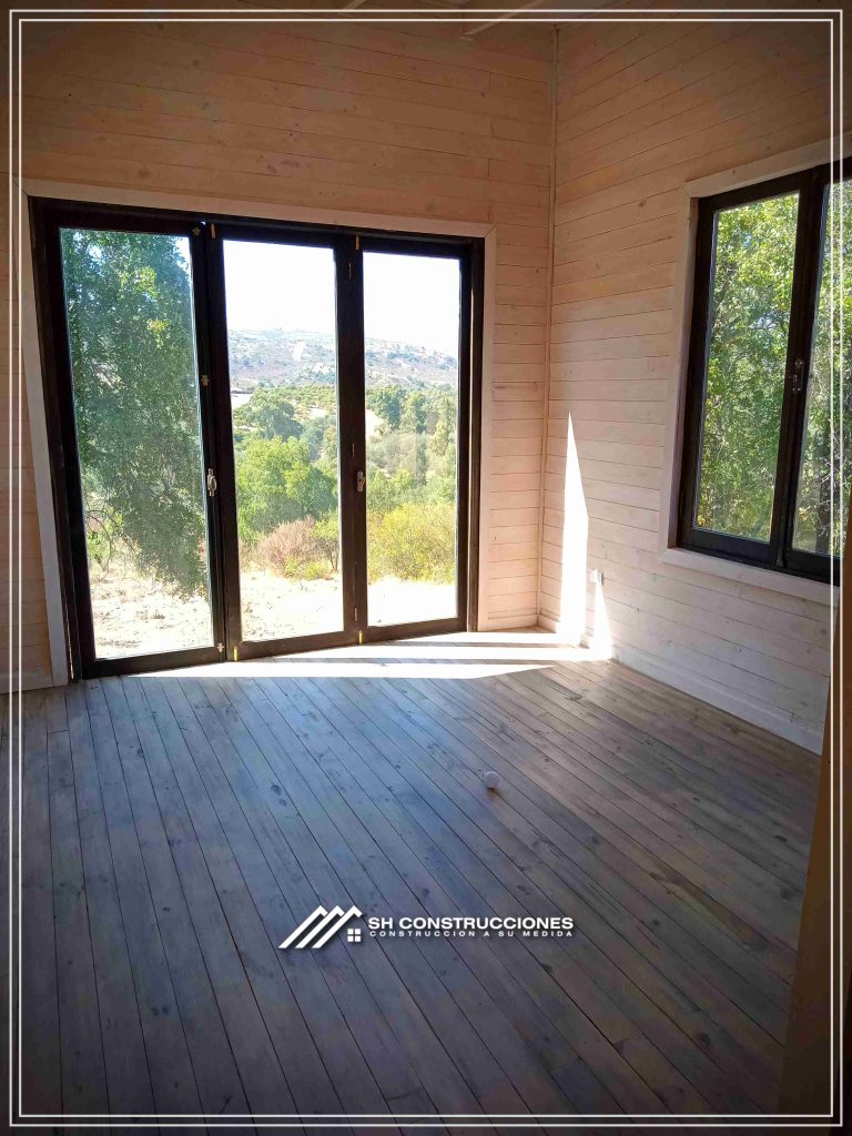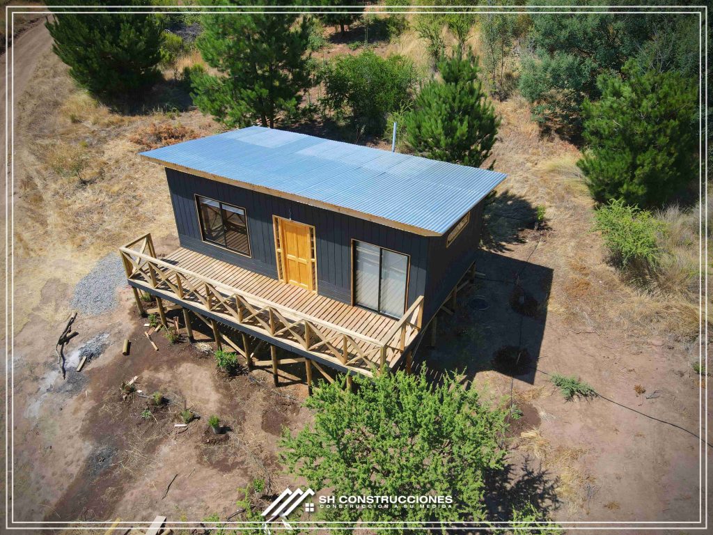 Montada sobre fundación hormigoPiso radier 10 cm, posterior cerámica o piso flotanteCubierta teja asfáltica color a eleccionAislación humedad en piso, muros y cieloAislacion térmica muros y cieloEstructura paneles Pino 2×4 ImpregnadosRevestimiento exterior madera impregnada tipo siding 1×6”, siding fibrocemento o fibrocemento con revestimiento texturadoRevestimiento interior madera o yeso cartonInstalaciones eléctrica según norma SEC,Instalacion gasfitería en cobrePuerta acceso atablerada, puertas interiores tipo sinfonía o similarVentanas aluminio tono a elección y cristal monolítico. Termopanel considera costo adicionalInstalación alcantarillado en interior de vivienda, fosa séptica se considera costo adicionalconexión a empalmes correspondientes de luz, agua y alcantarillado se cocidera costo adicionalEn Baños perímetro duchas con cerámicaArtefactos en completos en bañosEn cocina lava platos 1,20 mts y calefond 11 ltEstructura cubierta tabla 1×4 impregnadaCubierta Zinc acanaladoPintura exterior algifol madera tono a eleccion e interior según revestimiento