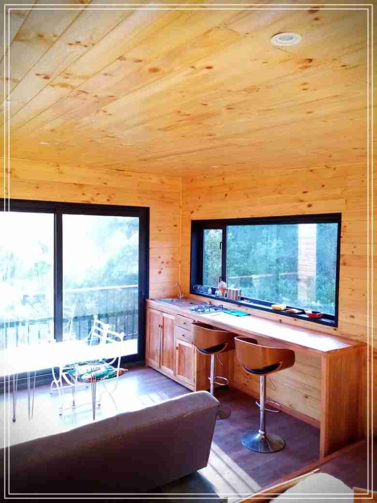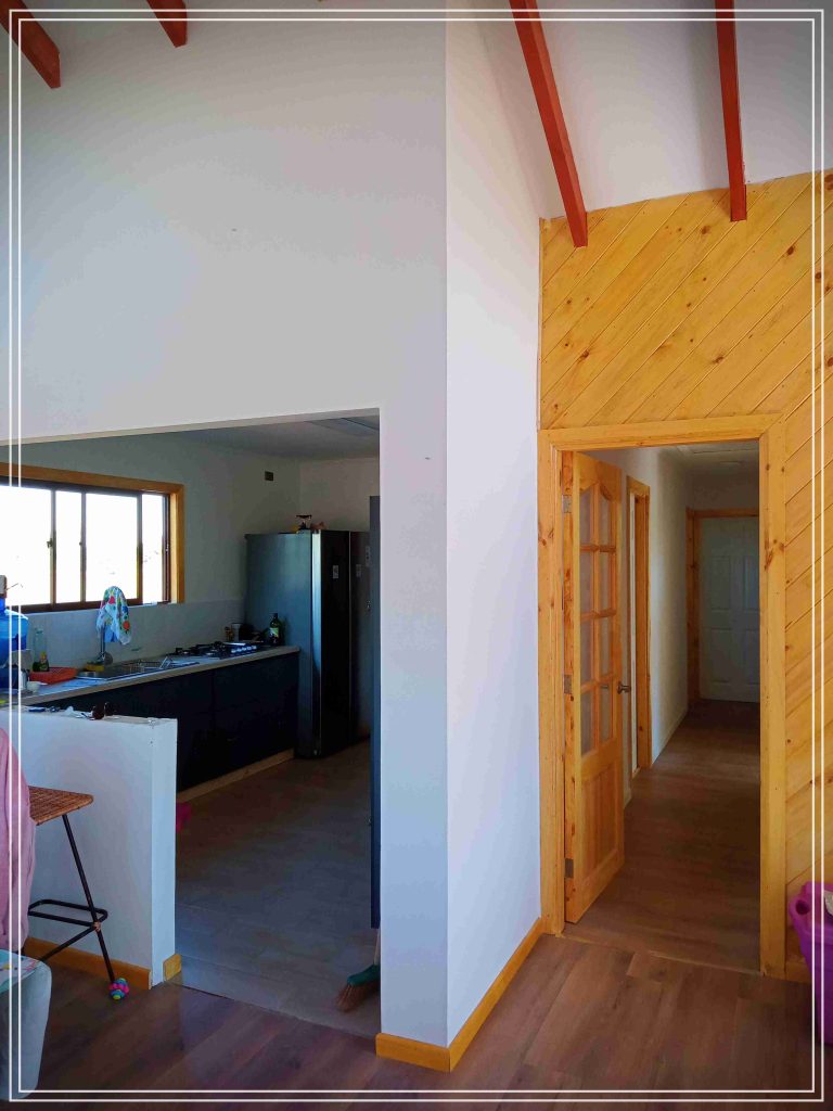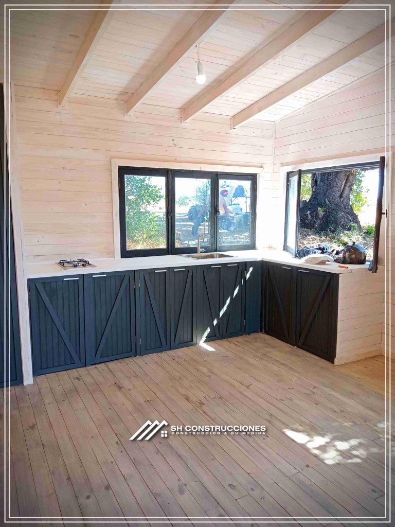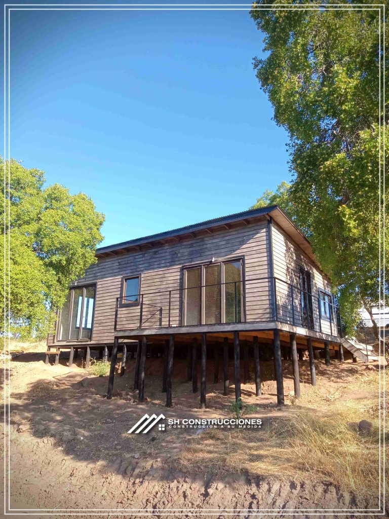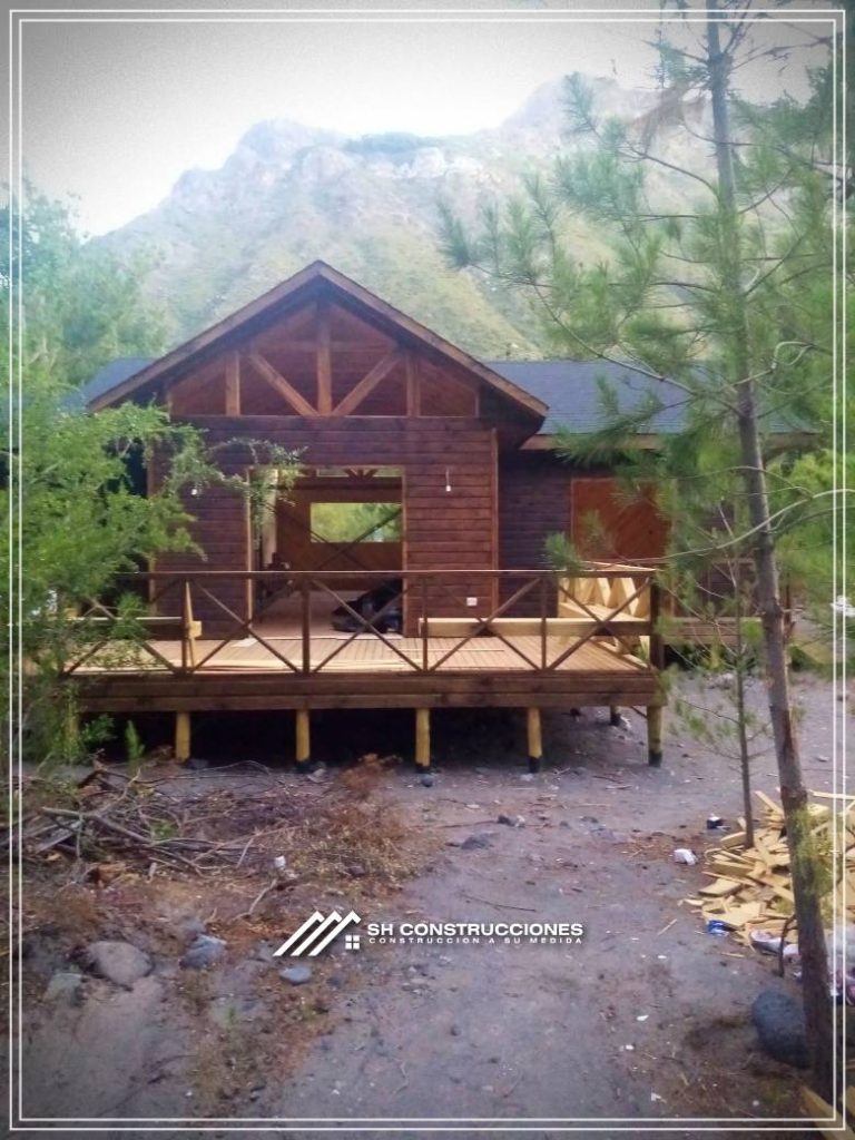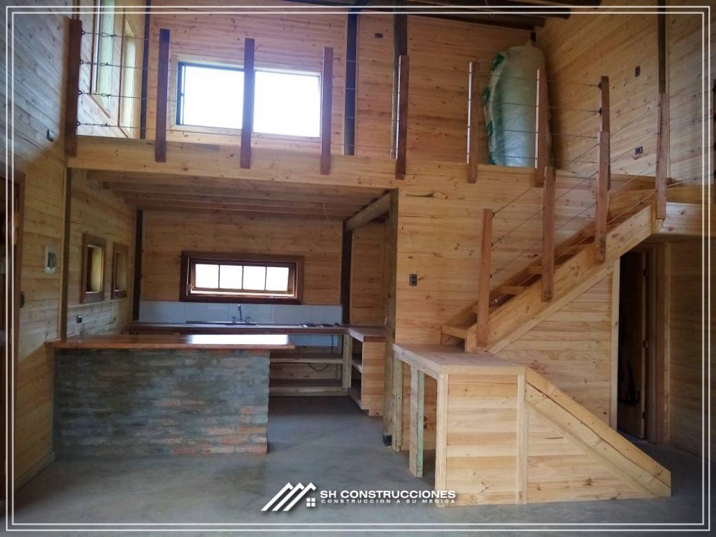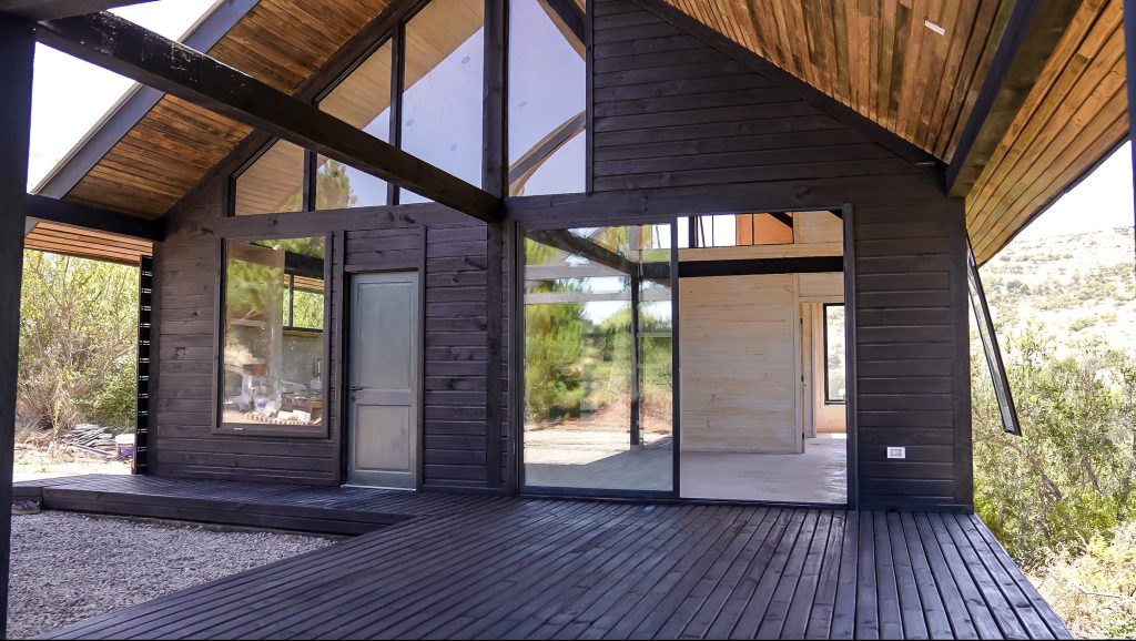 Montada sobre fundación hormigoPiso radier 10 cm, posterior cerámica o piso flotanteCubierta teja asfáltica color a eleccionAislación humedad en piso, muros y cieloAislacion térmica muros y cieloEstructura paneles Pino 2×4 ImpregnadosRevestimiento exterior madera impregnada tipo siding 1×6”, siding fibrocemento o fibrocemento con revestimiento texturadoRevestimiento interior madera o yeso cartonInstalaciones eléctrica según norma SEC,Instalacion gasfitería en cobrePuerta acceso atablerada, puertas interiores tipo sinfonía o similarVentanas aluminio tono a elección y cristal monolítico. Termopanel considera costo adicionalInstalación alcantarillado en interior de vivienda, fosa séptica se considera costo adicionalconexión a empalmes correspondientes de luz, agua y alcantarillado se cocidera costo adicionalEn Baños perímetro duchas con cerámicaArtefactos en completos en bañosEn cocina lava platos 1,20 mts y calefond 11 ltEstructura cubierta tabla 1×4 impregnadaCubierta Zinc acanaladoPintura exterior algifol madera tono a eleccion e interior según revestimiento