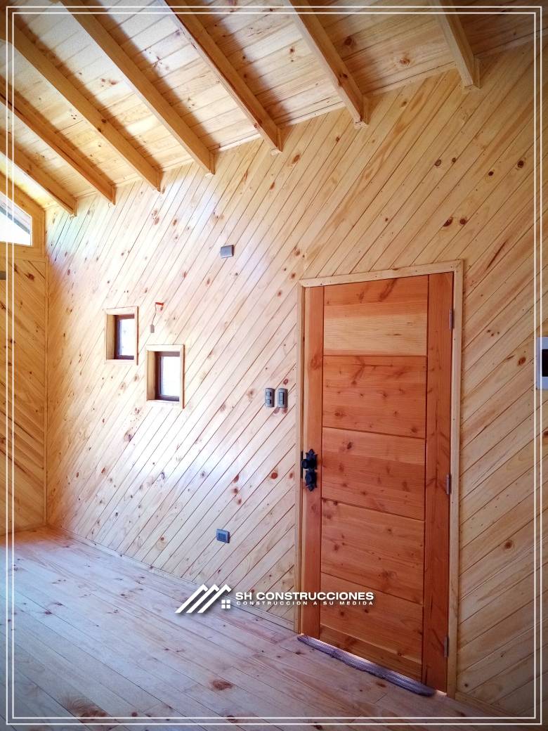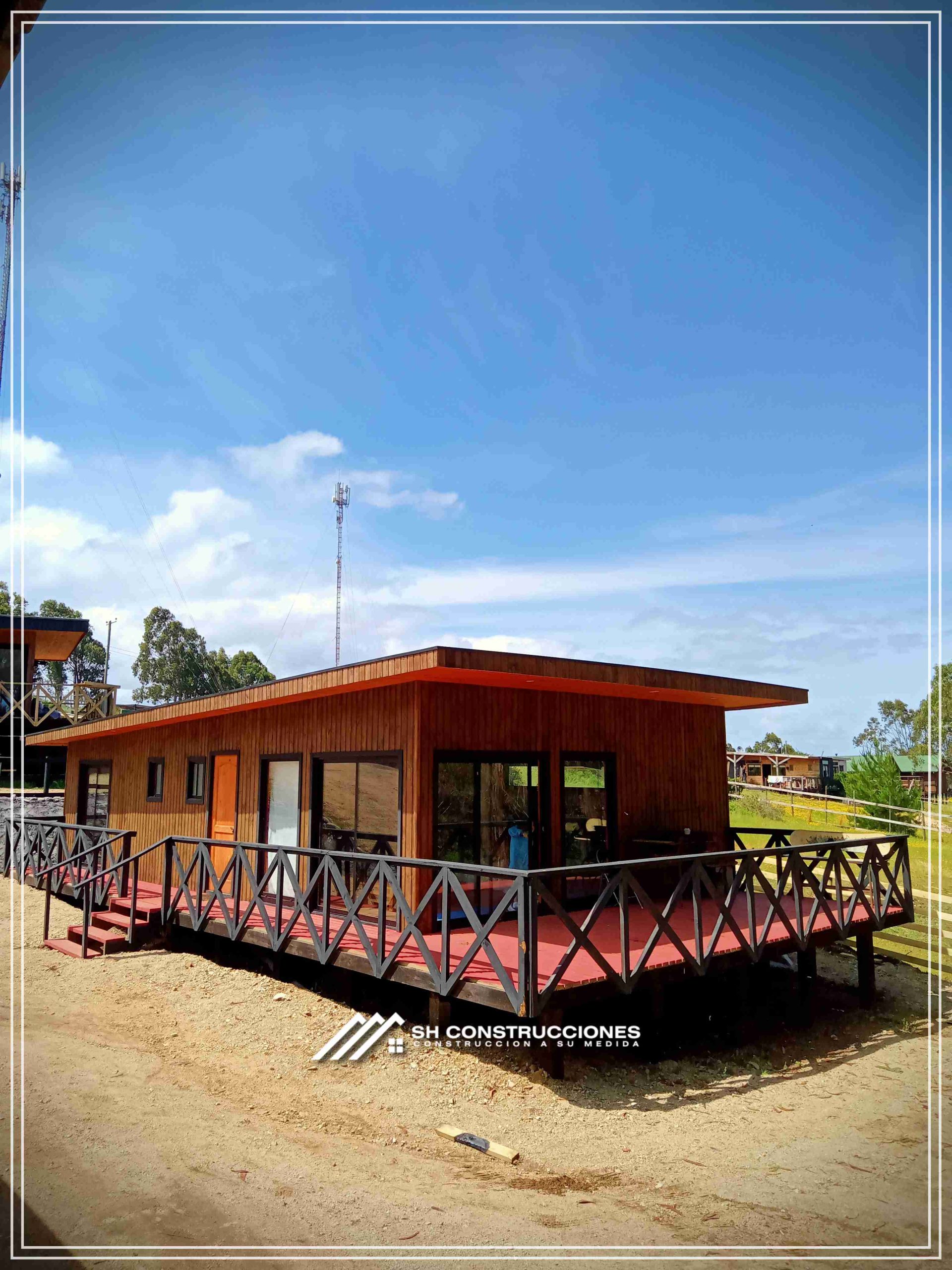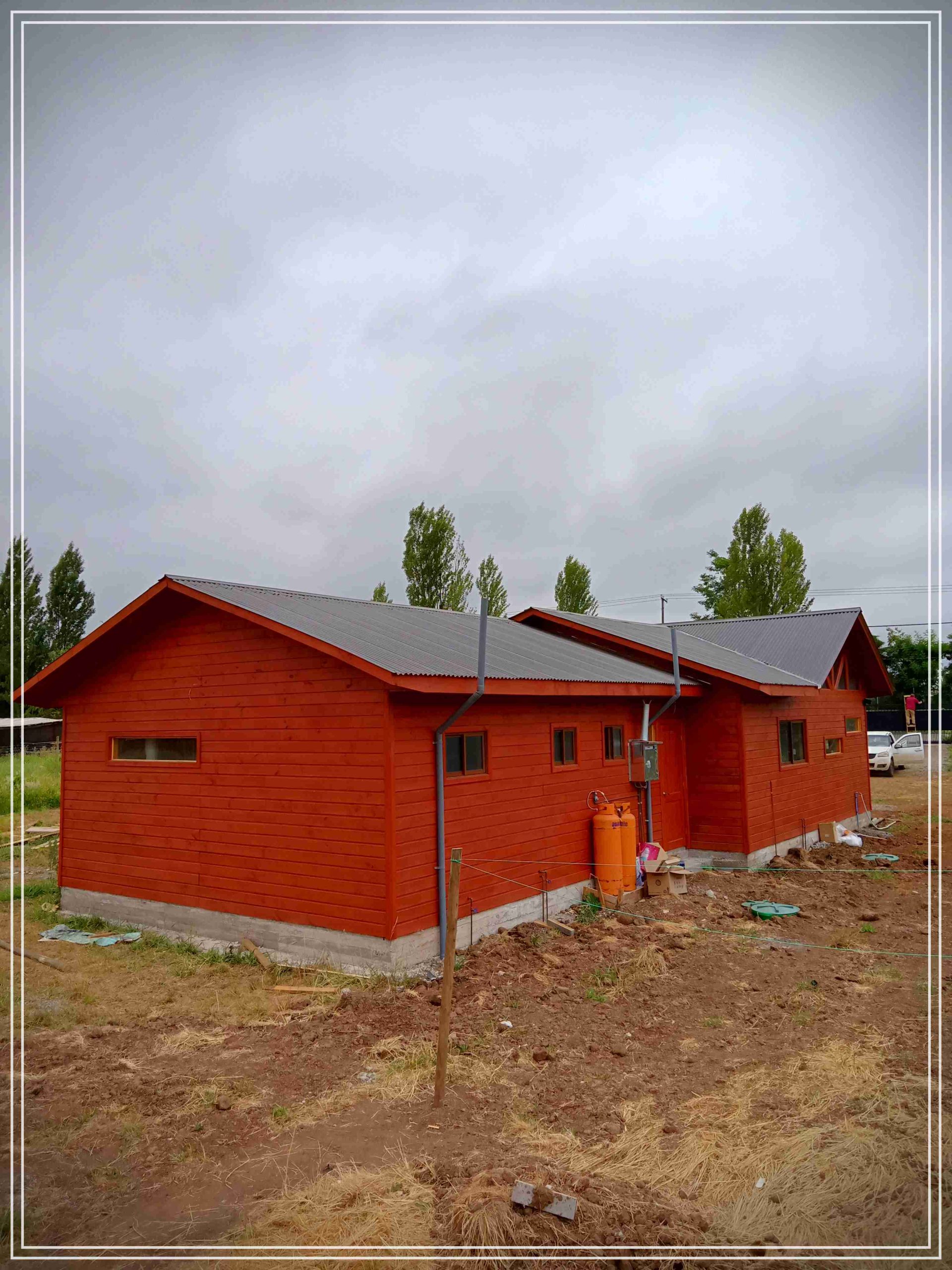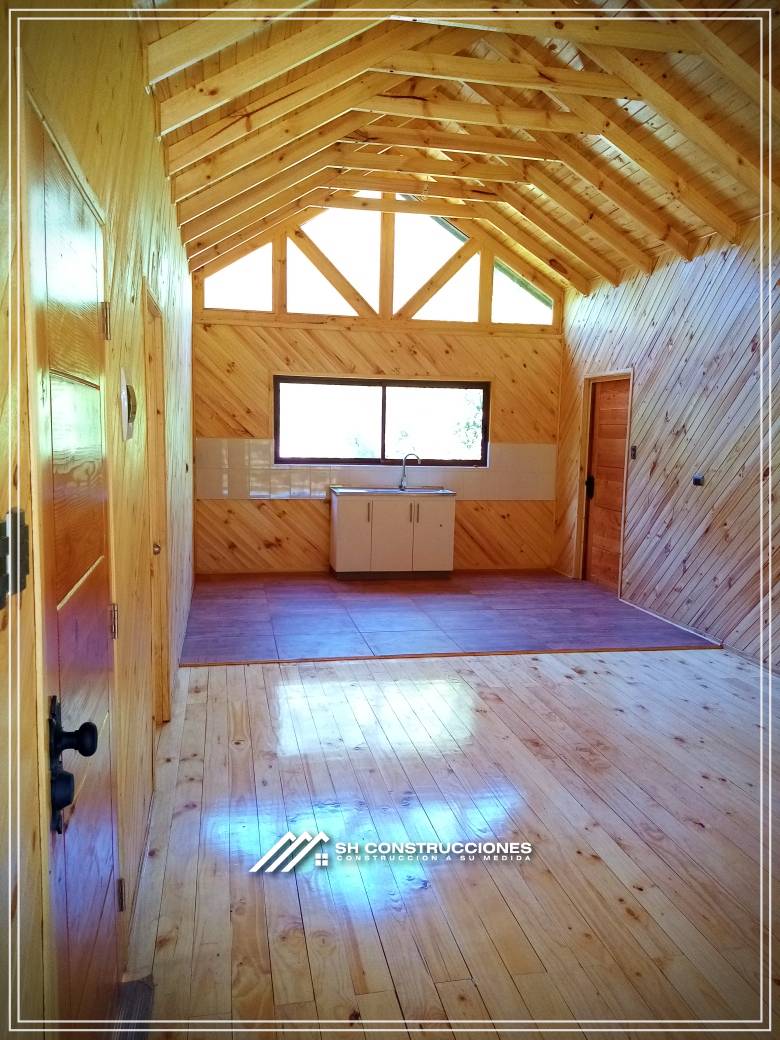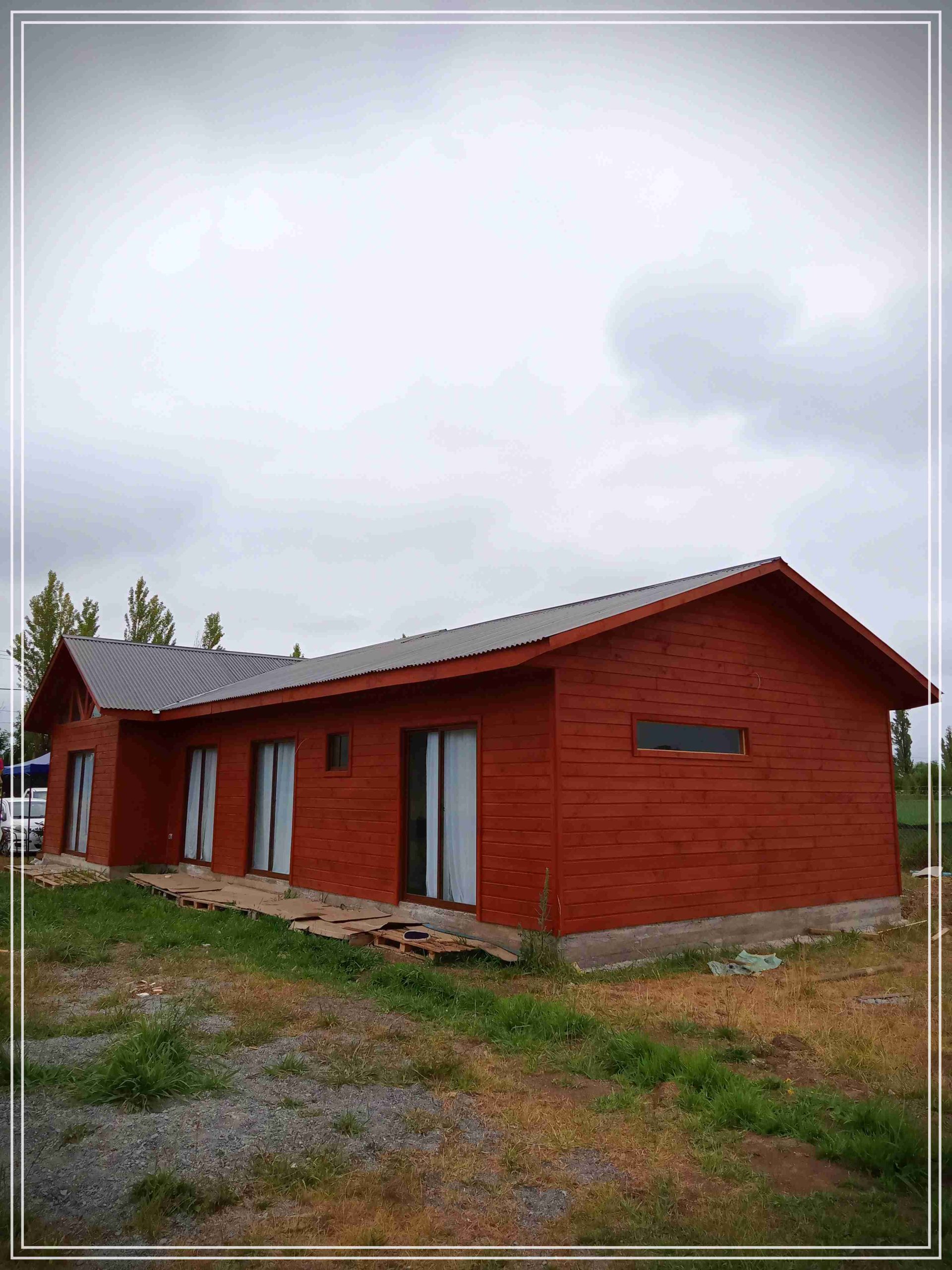 Montada sobre fundación hormigoPiso radier 10 cm, posterior cerámica o piso flotanteCubierta teja asfáltica color a eleccionAislación humedad en piso, muros y cieloAislacion térmica muros y cieloEstructura paneles Pino 2×4 ImpregnadosRevestimiento exterior madera impregnada tipo siding 1×6”, siding fibrocemento o fibrocemento con revestimiento texturadoRevestimiento interior madera o yeso cartonInstalaciones eléctrica según norma SEC,Instalacion gasfitería en cobrePuerta acceso atablerada, puertas interiores tipo sinfonía o similarVentanas aluminio tono a elección y cristal monolítico. Termopanel considera costo adicionalInstalación alcantarillado en interior de vivienda, fosa séptica se considera costo adicionalconexión a empalmes correspondientes de luz, agua y alcantarillado se cocidera costo adicionalEn Baños perímetro duchas con cerámicaArtefactos en completos en bañosEn cocina lava platos 1,20 mts y calefond 11 ltEstructura cubierta tabla 1×4 impregnadaCubierta Zinc acanaladoPintura exterior algifol madera tono a eleccion e interior según revestimiento