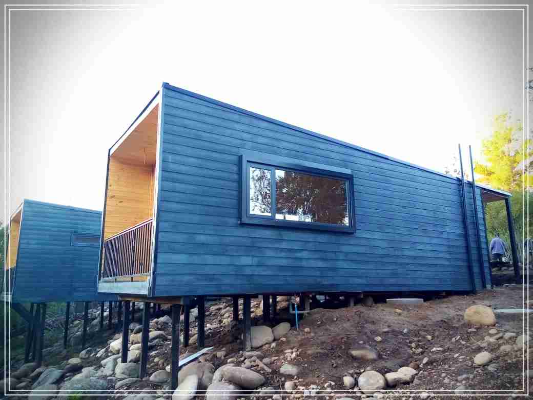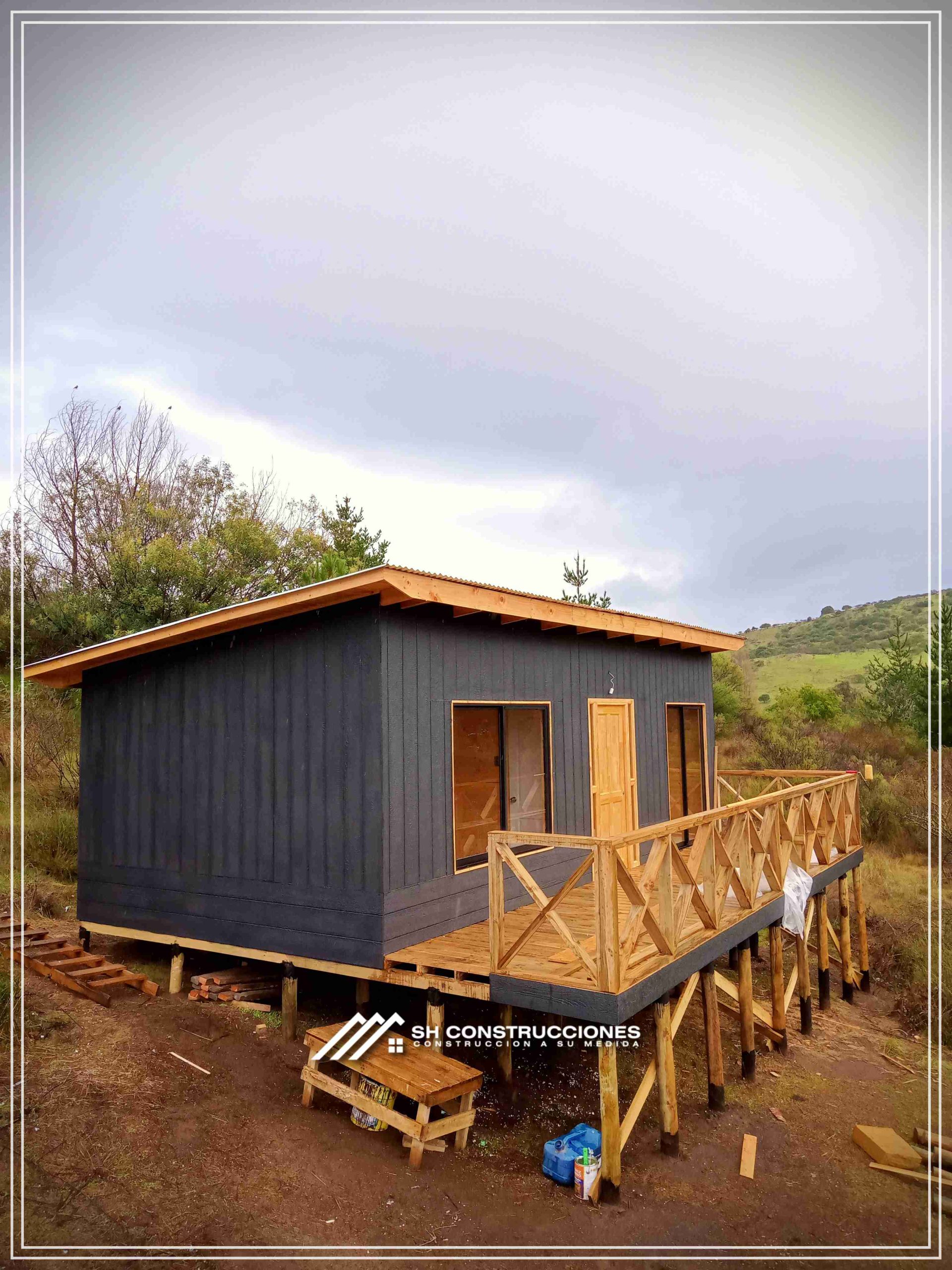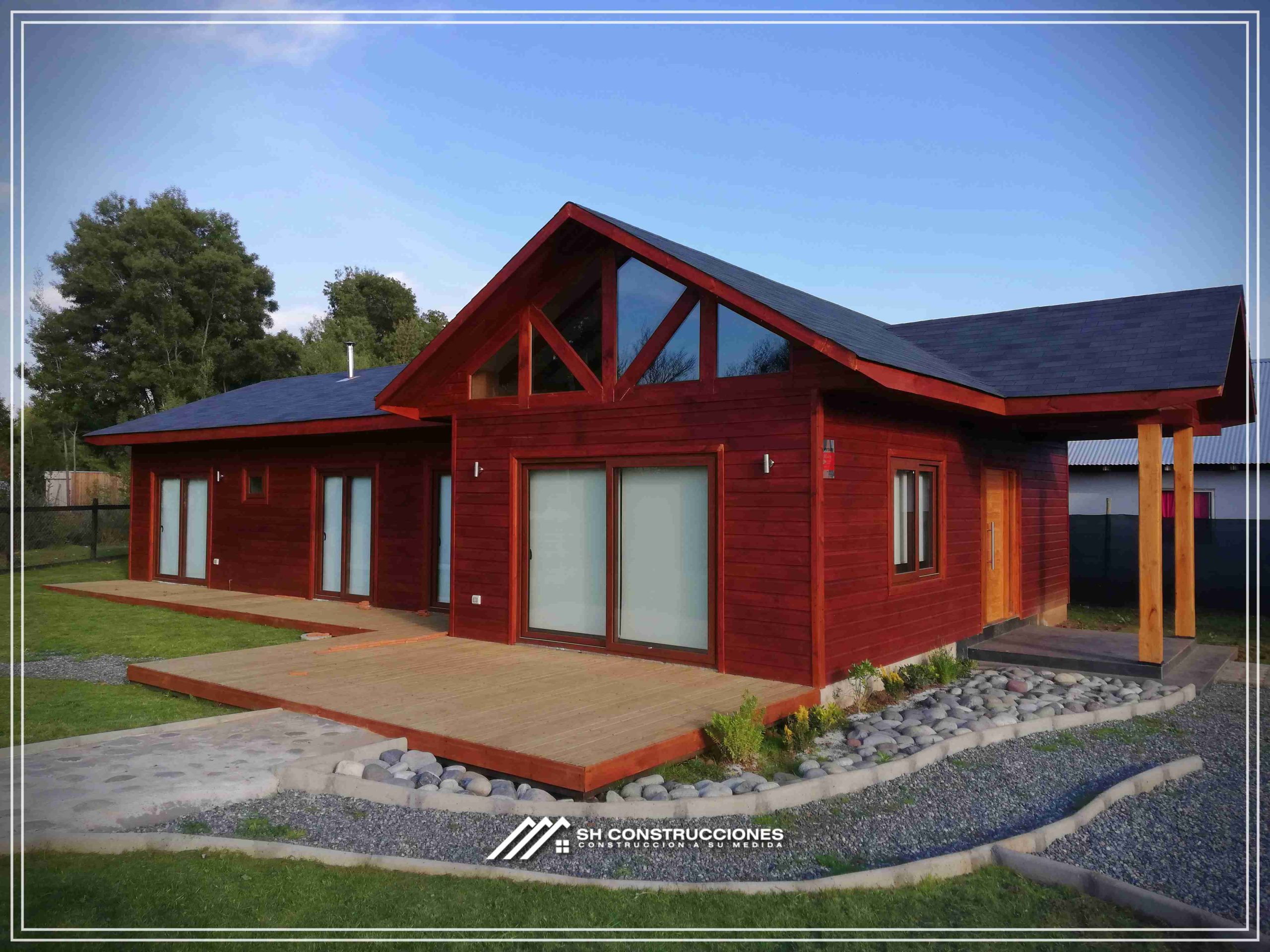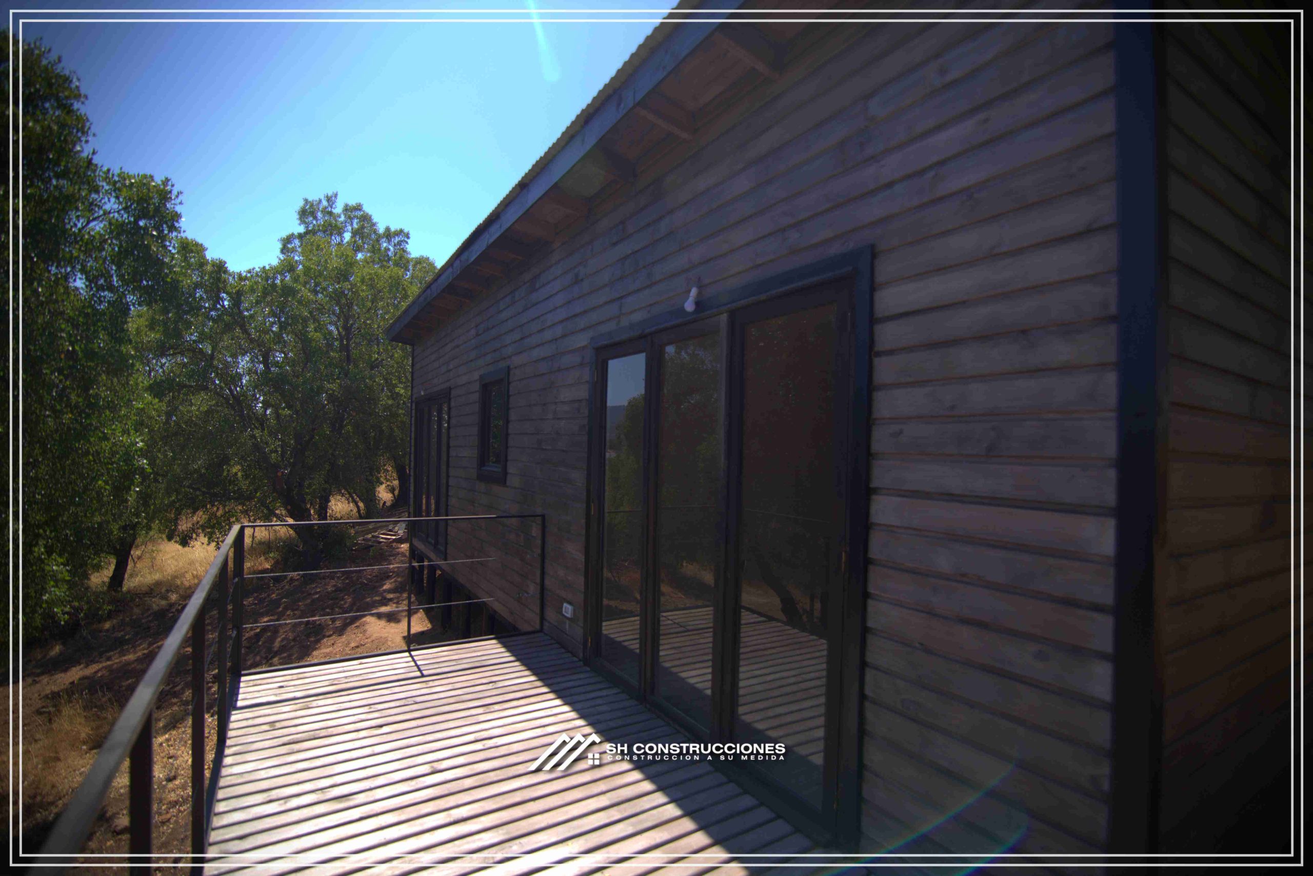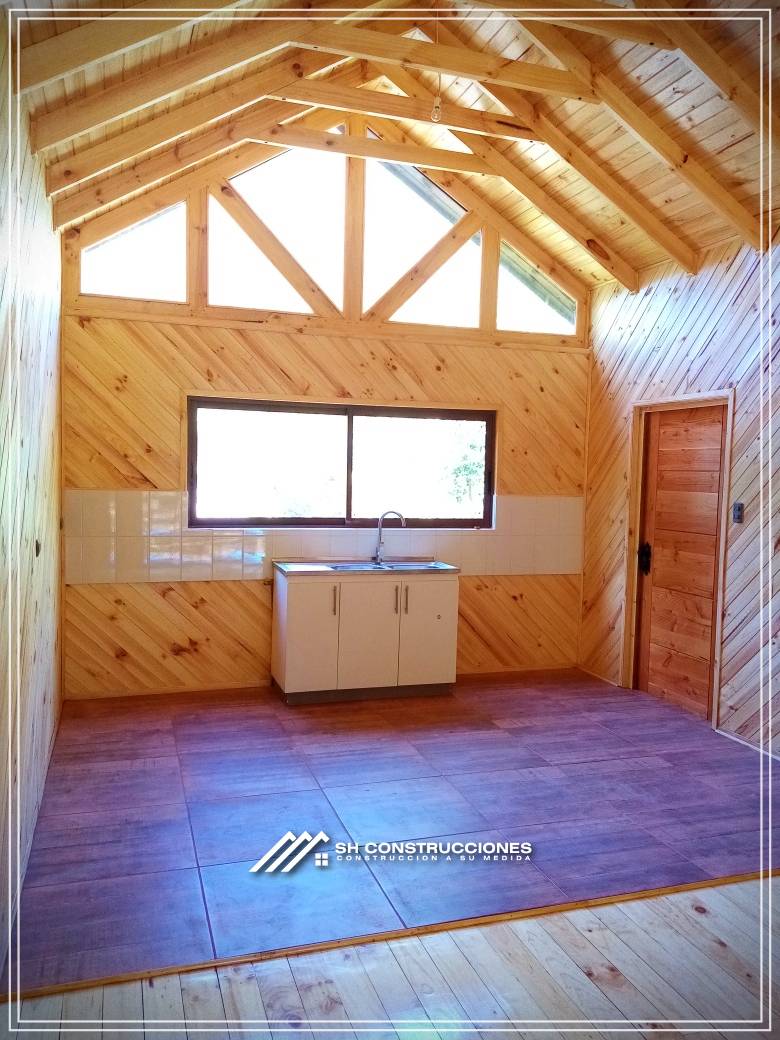 Montada sobre fundación hormigoPiso radier 10 cm, posterior cerámica o piso flotanteCubierta teja asfáltica color a eleccionAislación humedad en piso, muros y cieloAislacion térmica muros y cieloEstructura paneles Pino 2×4 ImpregnadosRevestimiento exterior madera impregnada tipo siding 1×6”, siding fibrocemento o fibrocemento con revestimiento texturadoRevestimiento interior madera o yeso cartonInstalaciones eléctrica según norma SEC,Instalacion gasfitería en cobrePuerta acceso atablerada, puertas interiores tipo sinfonía o similarVentanas aluminio tono a elección y cristal monolítico. Termopanel considera costo adicionalInstalación alcantarillado en interior de vivienda, fosa séptica se considera costo adicionalconexión a empalmes correspondientes de luz, agua y alcantarillado se cocidera costo adicionalEn Baños perímetro duchas con cerámicaArtefactos en completos en bañosEn cocina lava platos 1,20 mts y calefond 11 ltEstructura cubierta tabla 1×4 impregnadaCubierta Zinc acanaladoPintura exterior algifol madera tono a eleccion e interior según revestimiento