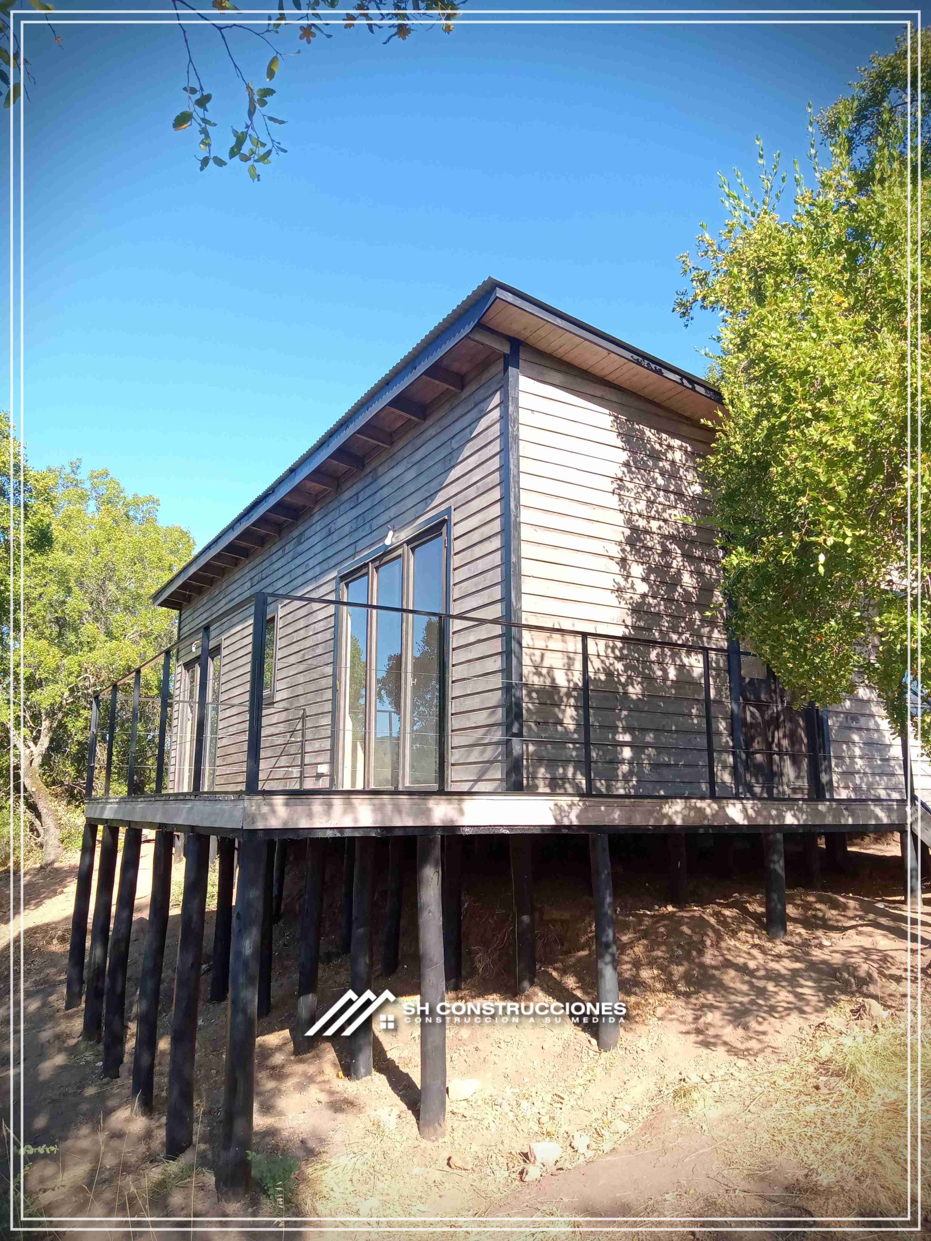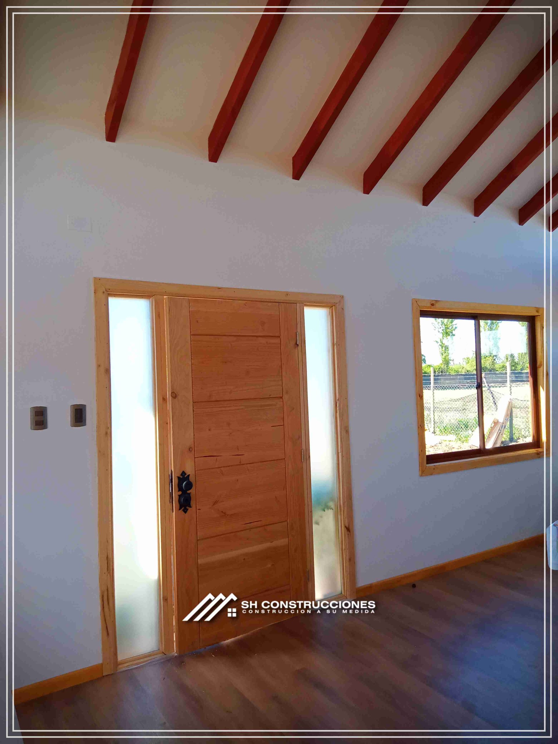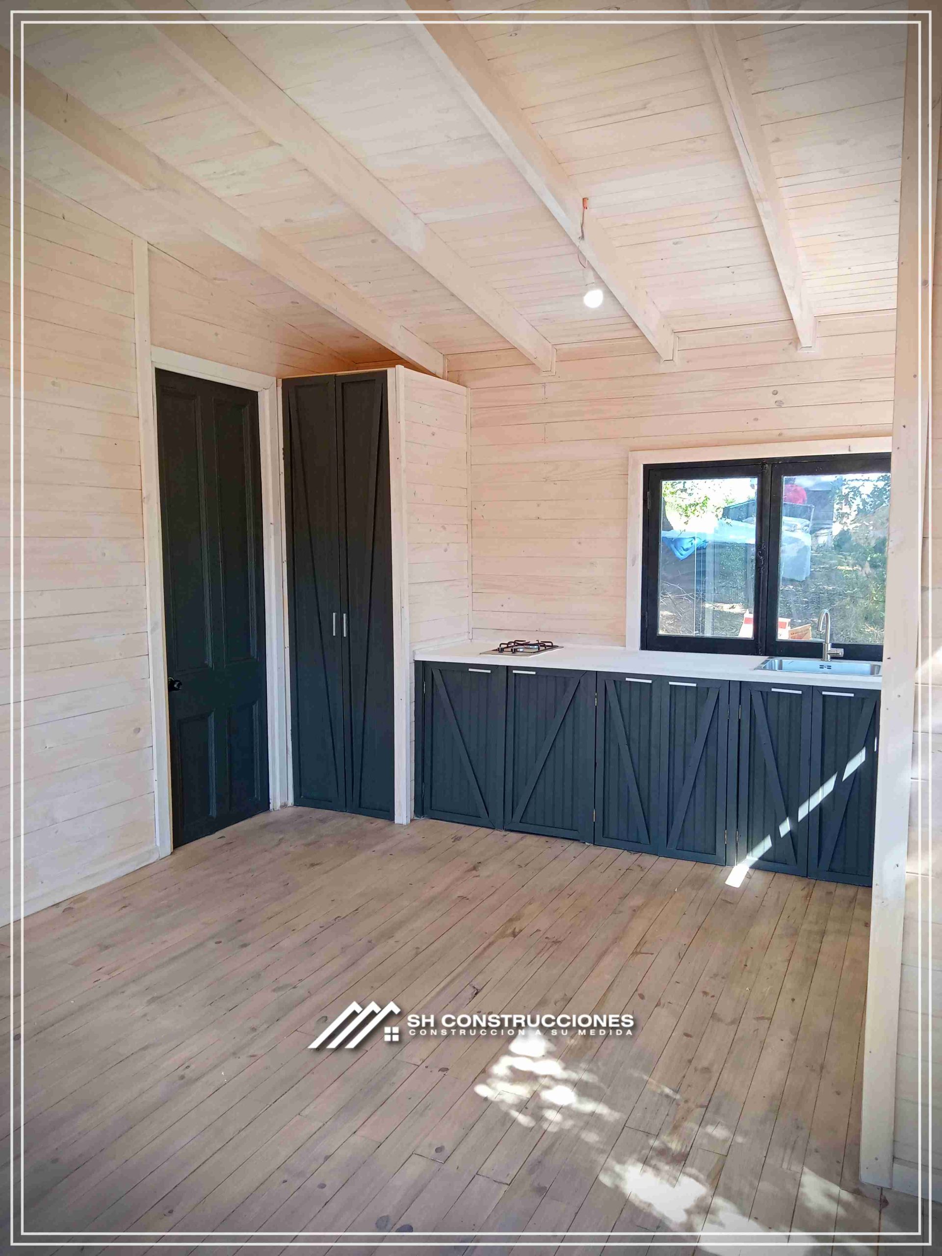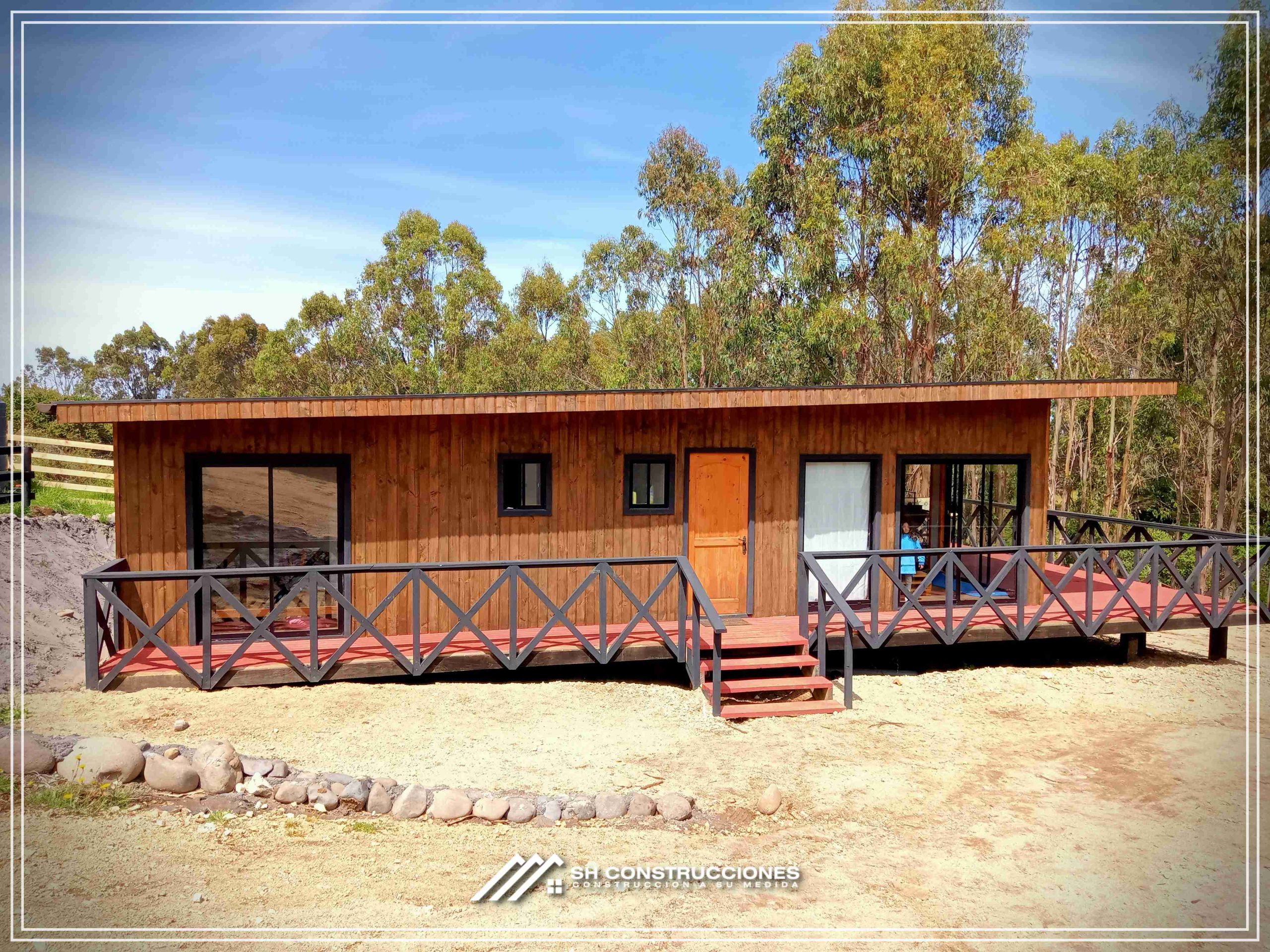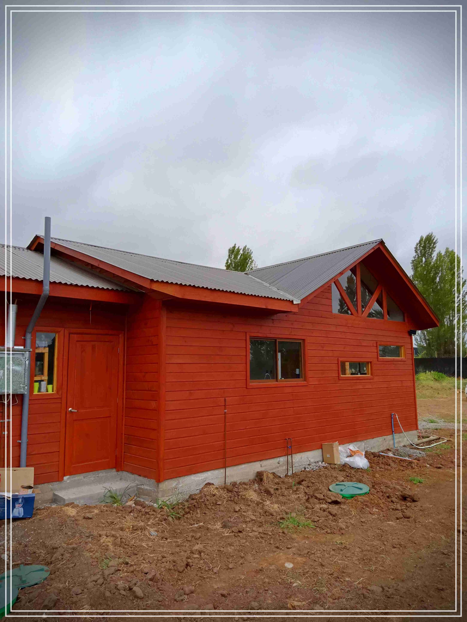 Montada sobre fundación hormigoPiso radier 10 cm, posterior cerámica o piso flotanteCubierta teja asfáltica color a eleccionAislación humedad en piso, muros y cieloAislacion térmica muros y cieloEstructura paneles Pino 2×4 ImpregnadosRevestimiento exterior madera impregnada tipo siding 1×6”, siding fibrocemento o fibrocemento con revestimiento texturadoRevestimiento interior madera o yeso cartonInstalaciones eléctrica según norma SEC,Instalacion gasfitería en cobrePuerta acceso atablerada, puertas interiores tipo sinfonía o similarVentanas aluminio tono a elección y cristal monolítico. Termopanel considera costo adicionalInstalación alcantarillado en interior de vivienda, fosa séptica se considera costo adicionalconexión a empalmes correspondientes de luz, agua y alcantarillado se cocidera costo adicionalEn Baños perímetro duchas con cerámicaArtefactos en completos en bañosEn cocina lava platos 1,20 mts y calefond 11 ltEstructura cubierta tabla 1×4 impregnadaCubierta Zinc acanaladoPintura exterior algifol madera tono a eleccion e interior según revestimiento